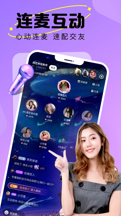 2、用声音遇见朋友,用真诚邂逅浪漫,找对象、找陪玩、一起开黑、谈天说地。
