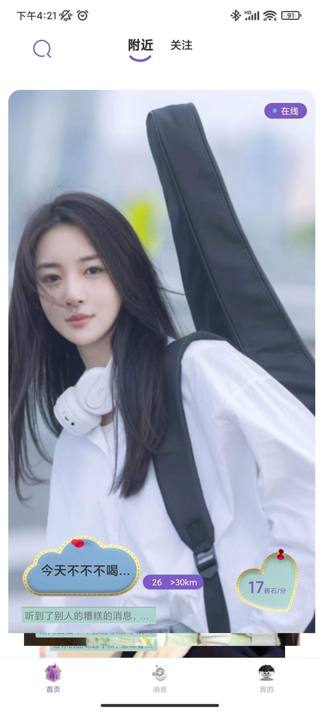 3、颜值、契合、有共同语言,在这里快速发现和结实附近喜欢的朋友。