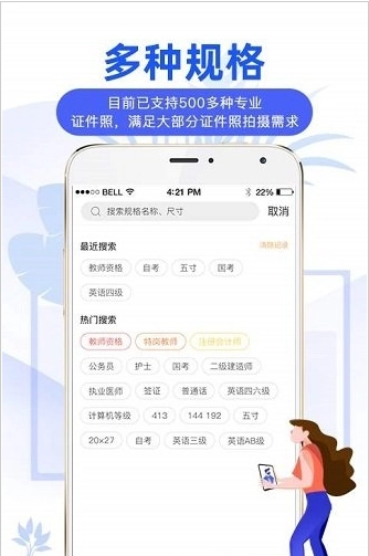3、用户可以随时用手机轻松拍照,各种证件照格式都可以轻松选择,满足用户随时拍照的需求。