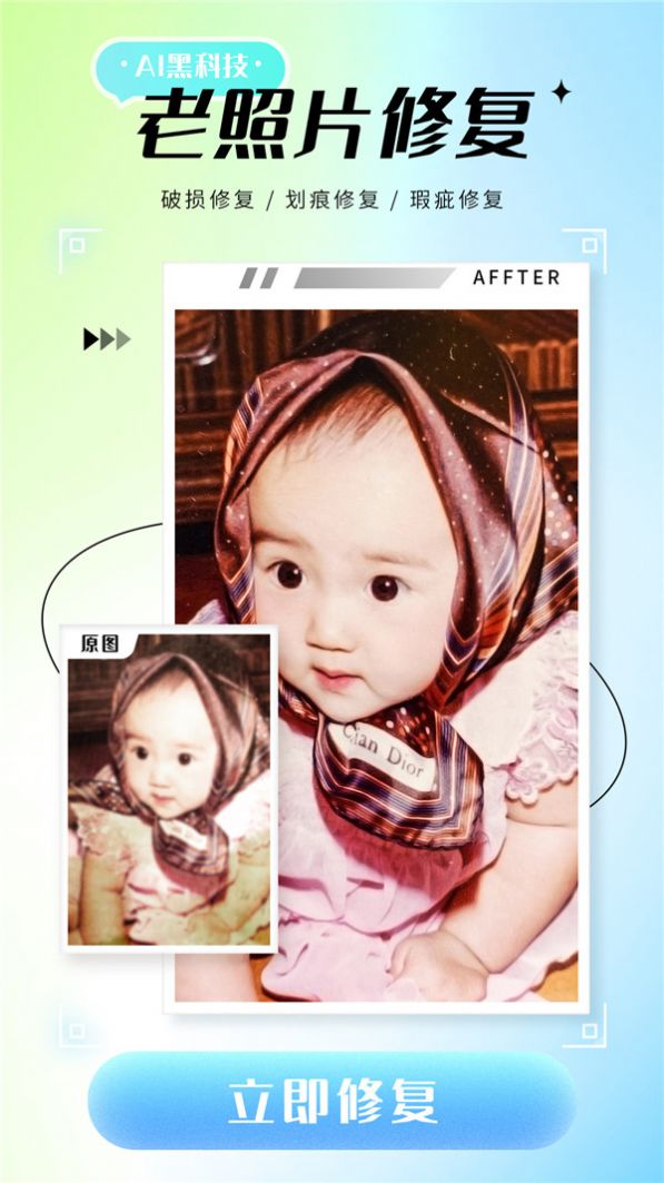 2、提供便捷的智能修复功能,让老照片重新焕发光彩。