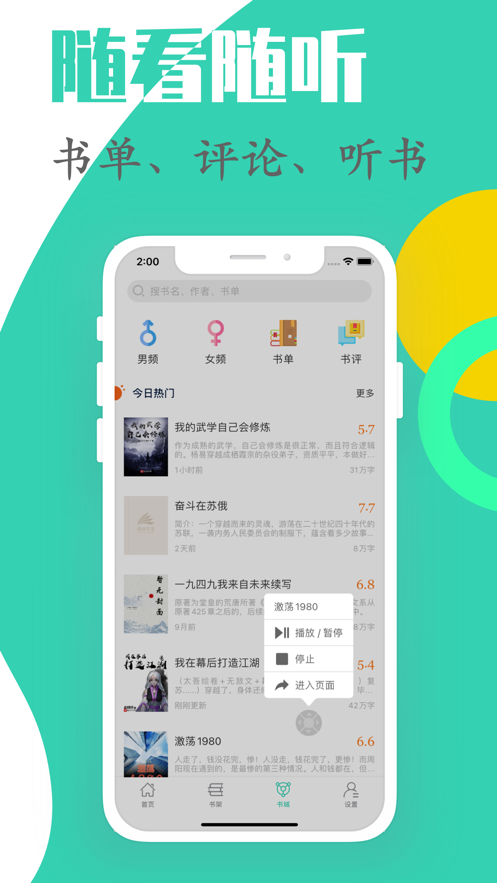 1、专为喜欢听书的用户打造,是一个免费听全网小说的神器。