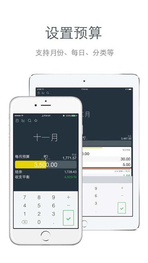 1、使用Money爱记账进行各种不同的预算的设置,在线进行管理。