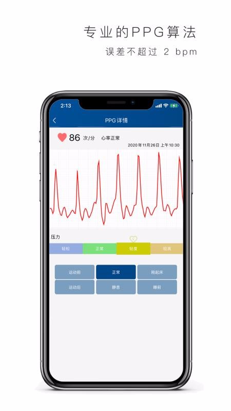 2.让心率测量变得更加的轻松和简单,用户可以随时随地的进行心率测量。