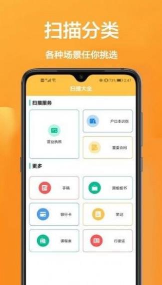 可以将文档、名片、二维码等各种信息扫描并转化成电子文件保存,方便用户随时查阅,拥有强大的识别能力和多种高级功能,可以帮助用户提升办公效率。
