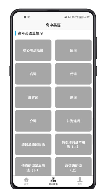 高中英语课程是一款不错的学习英语知识的软件,这个软件是专门为高中学生们打造的学习英语的神器,学生们既可以使用这个软件来提前的学习课本上的知识,还可以通过这个软件来了解和复习已经学习过的课程和内容,帮助用户们每天都能够巩固和温习,让自己不会出门遗忘的情况。