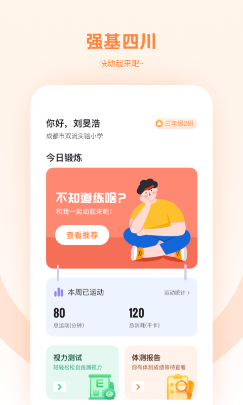 1、是一款为用户提供健身服务的移动应用程序,旨在提高学生的身体素质。