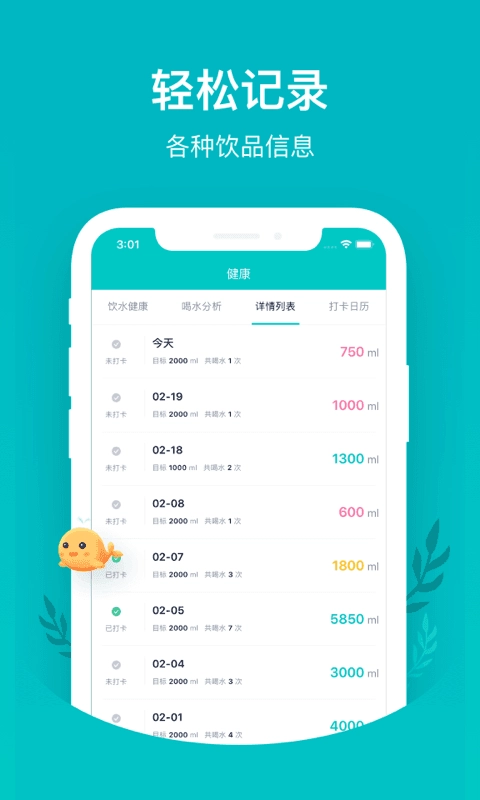 ,准确记录每天的饮水记录。