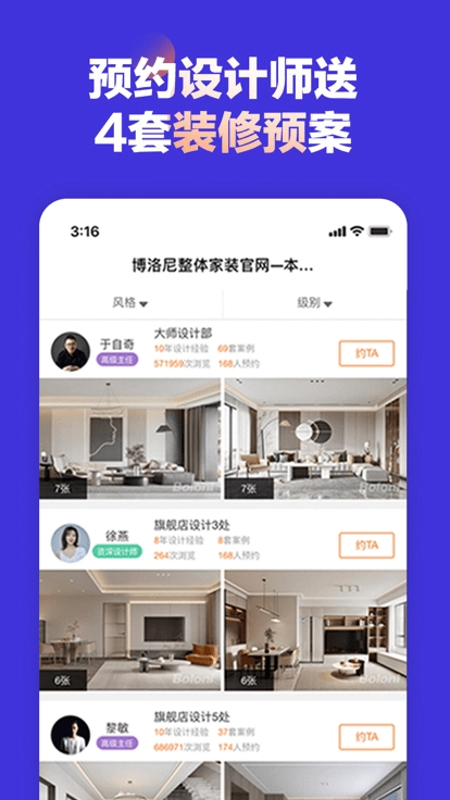 博洛尼装修是一款非常好用的线上完成装修和服务的软件,同时用户们还能够在这里能够看到非常多的装修方案和设计师都是可以完成的,能够很好的满足用户们的使用需求等等,将自己的想法告诉专业的设计师也是可以的,能够给用户们带来不一样的体验感受,快来这里下载使用一下试试吧。