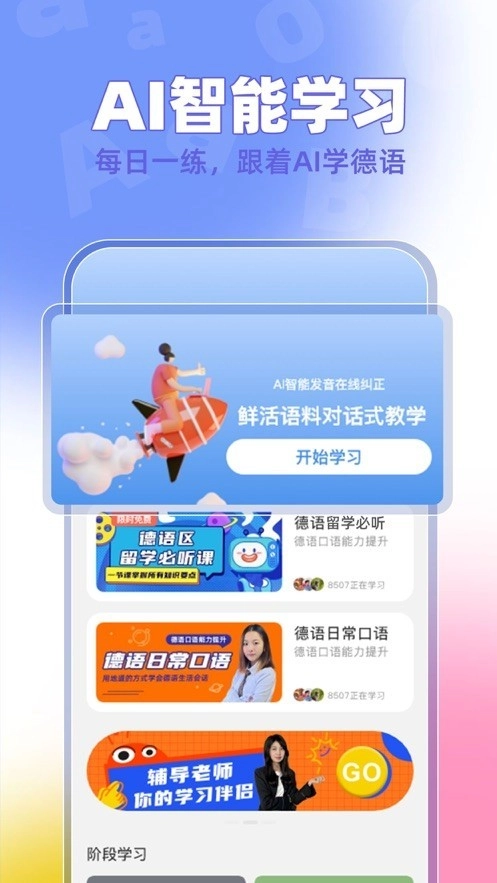 1、专业的德语发音指导,帮助用户正确发音,克服发音难点。