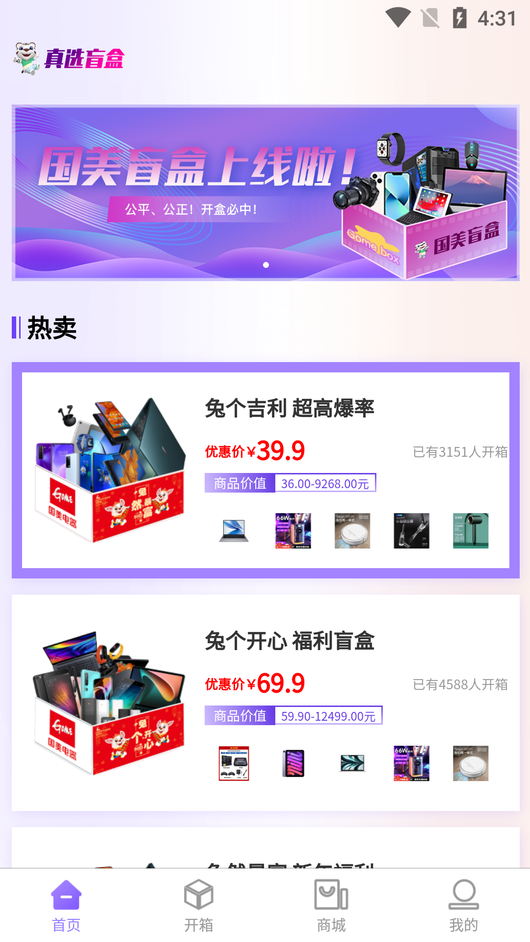 3、是一个充满趣味性和刺激性的购物应用,每次开启盲盒都能体验到购物的乐趣和惊喜,让你在购物中寻找娱乐。