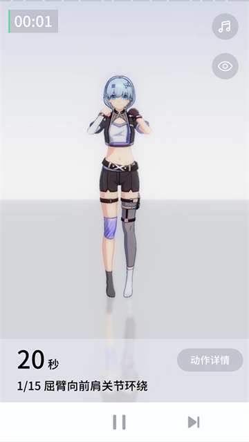 7、健身教程也很规范,开始训练时,视角也可以360度无死角旋转,从各方面都可以进行观看,还拥有详细的动作要领可以查看。