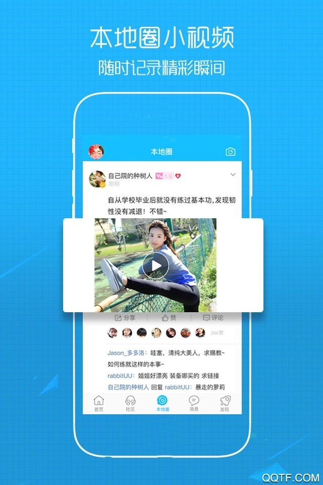 1、该软件具有本地化社交特色,目的是打造真正的社交圈,方便用户分享生活点滴。