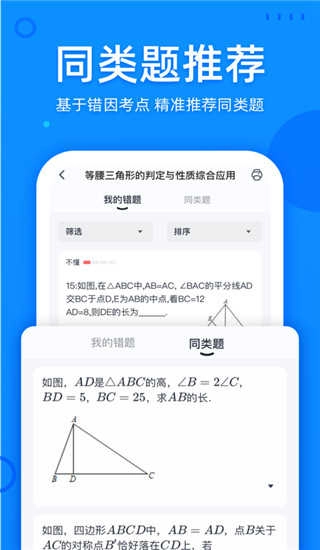 喵喵错题App可以根据用户的错题记录,智能分析并整理错题,帮助用户快速找到自己的薄弱点,从而更好地针对性学习。