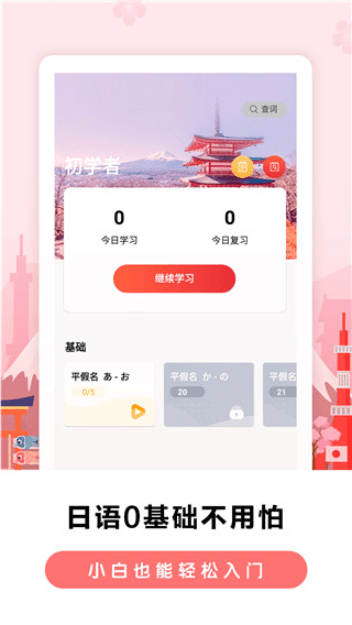 听音辨意、假名选意、听音打词、听音写词、假名组合、听音速记等专为背日语单词设计的复习方式,寓教于乐,让日语学习不再枯燥。