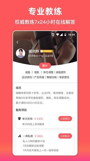 2、是一款非常专业、规律的锻炼软件,在袋鼠运动软件里面,有专业的运动教练帮助您继续健身,并提供一对一服务。