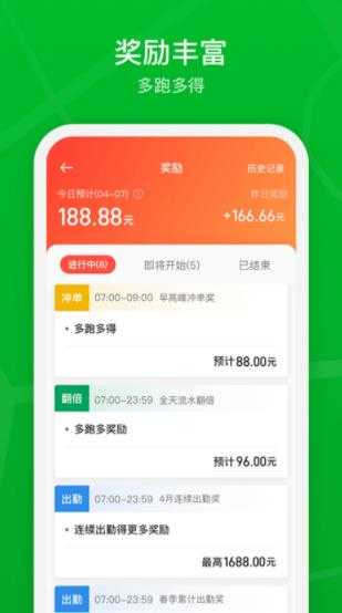 有冲单奖励、高峰奖劢、流水奖励等丰富奖励活动;订单统计细致、结算周期自由选择。