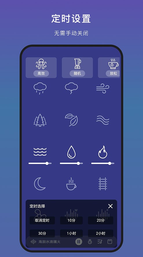 2、软件内置建筑噪音生成器,产生类似城市拥挤噪音的声音来助眠;
