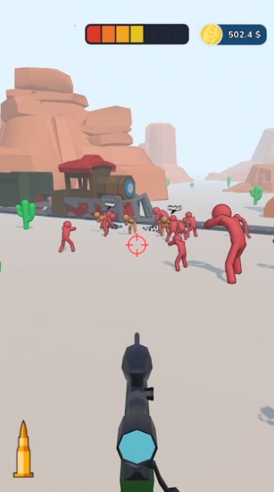 玩家需要控制牛仔手中的武器,射击出现的敌人。每个关卡需要打倒一定数量的敌人,才能过关。