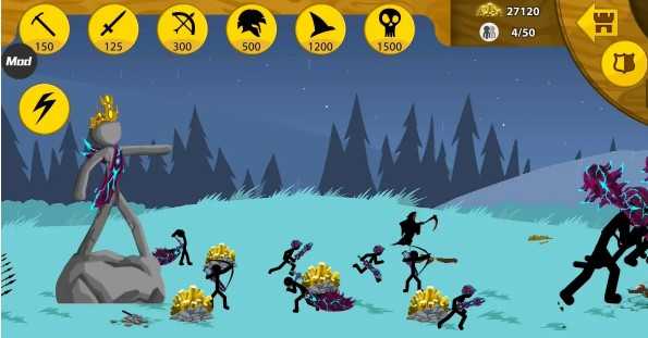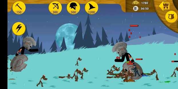 3、游戏中玩家将亲临激烈刺激的战场,指挥你的火柴人勇士进行作战,而且游戏中有着各种火柴人士兵可供训练。