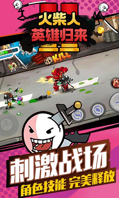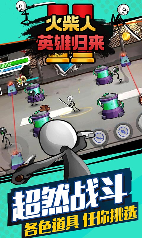 1.这里提供各种各样的火柴人角色,每一个角色都有独特的技能。