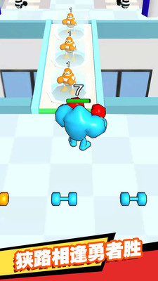 2、玩家们需要通过收集相同颜色的哑铃和推动相同颜色的物体来保持自己不断地向前进。