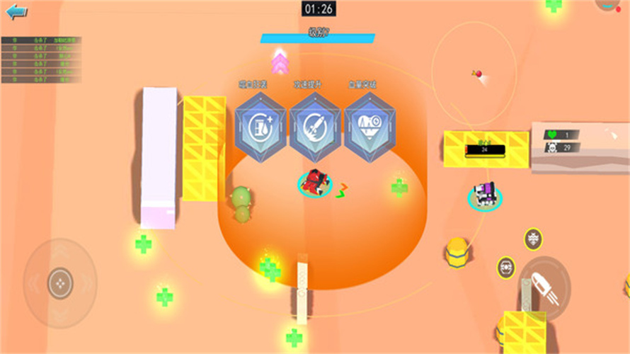 游戏中的坦克操作简单易学,采取多人竞技模式,玩家可以匹配五个角色进行3V3模式对战。
