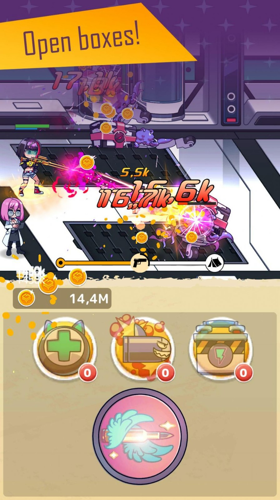1.免费更新武器,以增强各种能力。没有图案可以阻挡你的子弹,享受疯狂射击的乐趣。