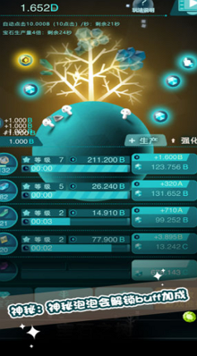3、通过使用宝石来升级你的科技,培养更大的神树。