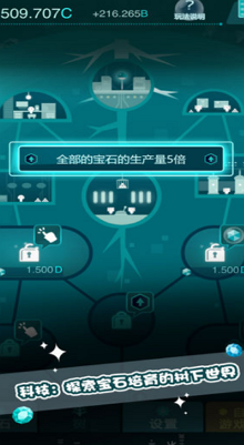 3、科技:纵横深入的树下世界,各种辅助宝石产出的高科技,等待你的开发。