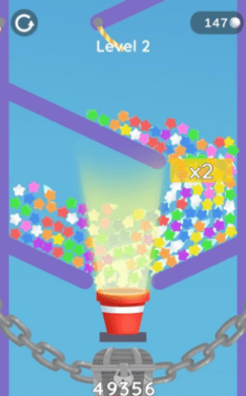1、当球落下击中目标时,可以收集很多物品,让球增加,落入桶中获得很多积分。