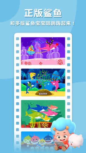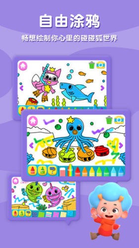 2、跟着鲨鱼一家学习儿童舞曲,给他们涂上漂亮的颜色,为他们演奏歌曲,提高他们的乐感,了解海洋动物。