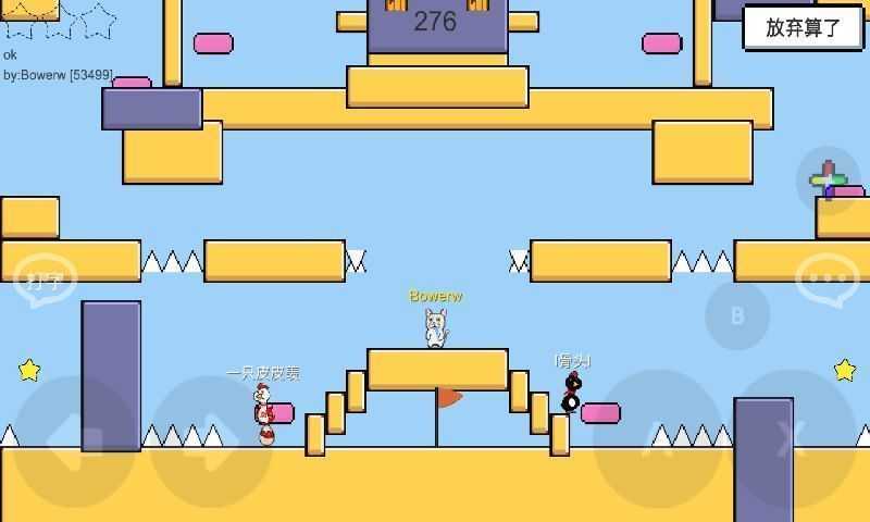 ③游戏的模式采用虐心,相比于其他游戏,游戏的虐心程度显然不与老游戏《猫里奥》相当,所以与其说这款游戏是虐心游戏,倒不如说它是一款联机的乐趣游戏,但是联机方面做的也不是相当好,值得我的可圈可点的仿佛只有创新。