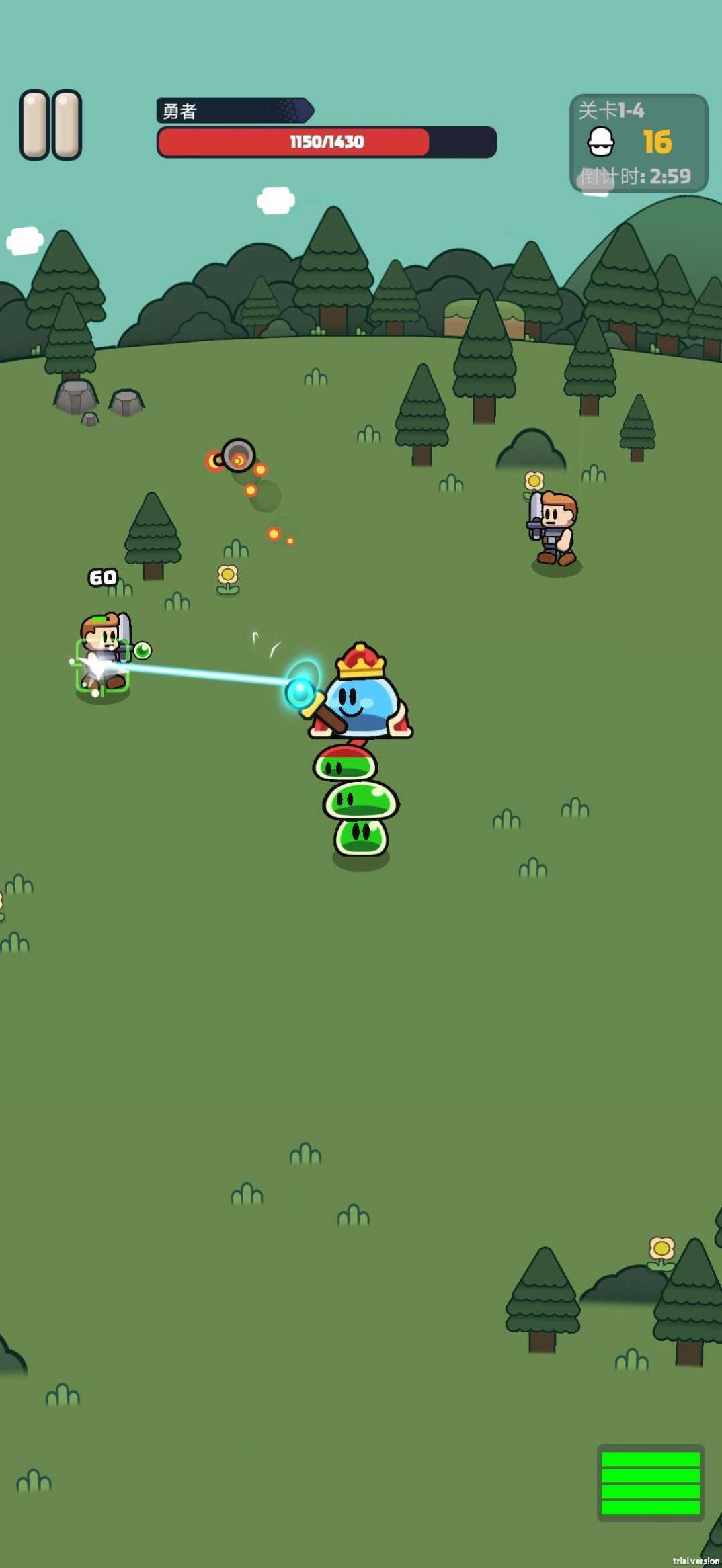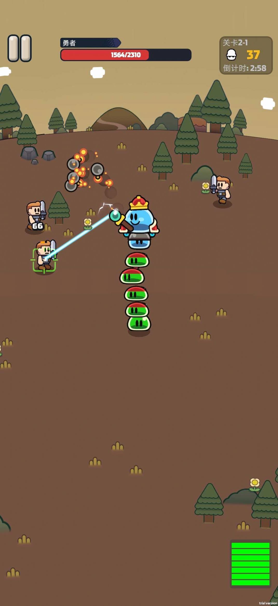 1、这是一款控制史莱姆战略对决的冒险游戏,你将控制一个英雄角色,带领他在充满危险的世界中战斗。