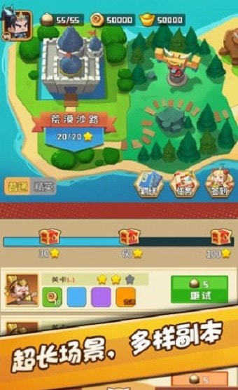 1.在游戏中收集各种各样的角色,进行战斗,合理安排。英雄进行对战冒险,完成游戏中的任务。