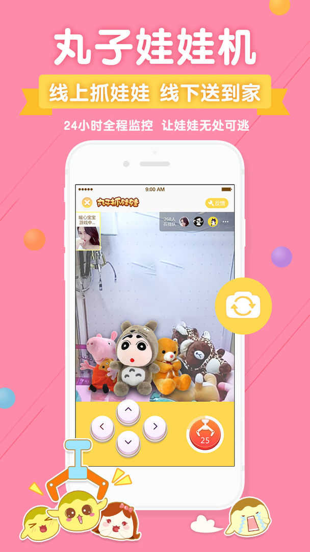 真机操控24小时抓娃娃,线上抓中,线下送到家!抓中机会高,小手一抖,娃娃抓走。