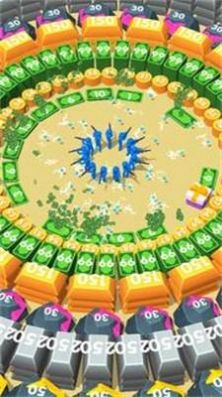 2、是一款解压的趣味射击游戏,玩家需要控制射手来射击不断袭来的硬币,赚取金钱。