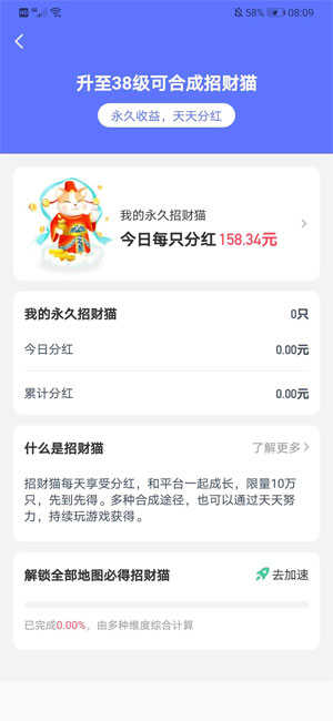 3、不断升级达到38级后,可以合成永久的招财猫,体验惊喜红包,轻松赚零花钱。