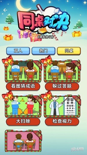 同桌对决是一款有趣的多人休闲游戏,旨在促进团队合作和竞争意识。玩家需要在游戏中与其他玩家配合,击败对手,并赢得比赛。游戏拥有精美的界面和丰富的游戏玩法,是一款不容错过的好游戏。兼备竞争和合作的元素,适合各种年龄段玩家的娱乐需求。无论是在闲暇时间还是在等待的过程中,玩家都可以在游戏中找到欢乐和乐趣。