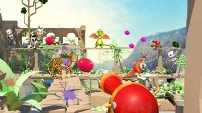 3、彩弹射击挑战游戏中你可以对这些动物们进行射击,让他们染上各种各样的色彩。