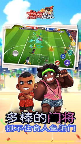 为IP,在手机端完美还原了休闲足球的体验,玩家可在游戏内感受到原作一样的各式射门方式,旋风盘球、爆炸射门、太极射门、食人鱼射门等等。同时,游戏提供了实时对战模式,玩家与玩家进行竞技,体验不同于传统足球竞技的体验。