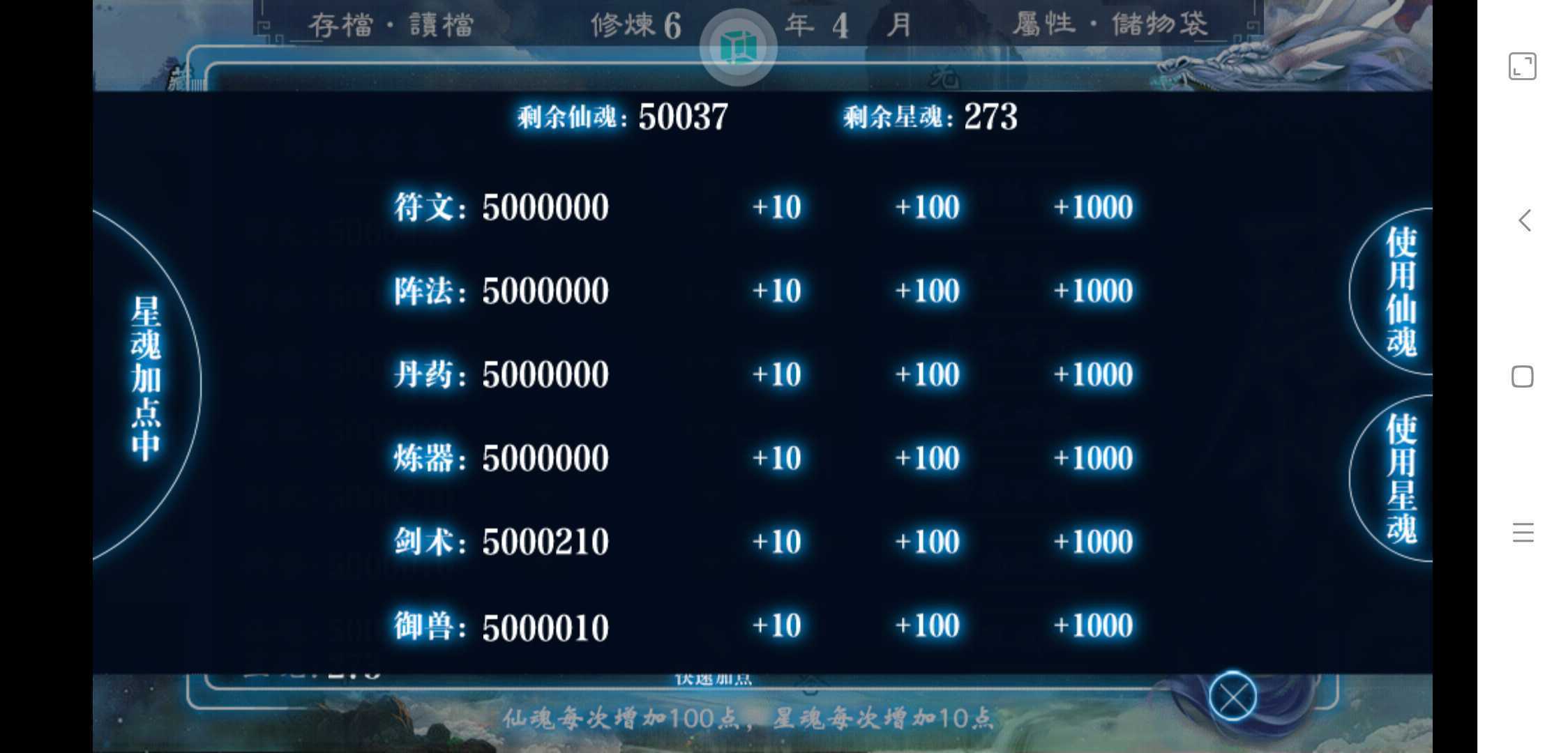 用鲜花购买仙孕宝珠;妻妾生三胞胎,天降鸿福,+1点星魂;去打十八妖楼可获得星魂;主角提升大境界,例如练气→筑基→获得10点星魂;筑基期,破月秘境里最多能待50年,一次行动花一年时间(六道其一+100,星魂十1),最多一共50次机会。