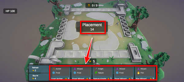 2、购买后把角色摆放在棋盘上,角色会自动战斗;