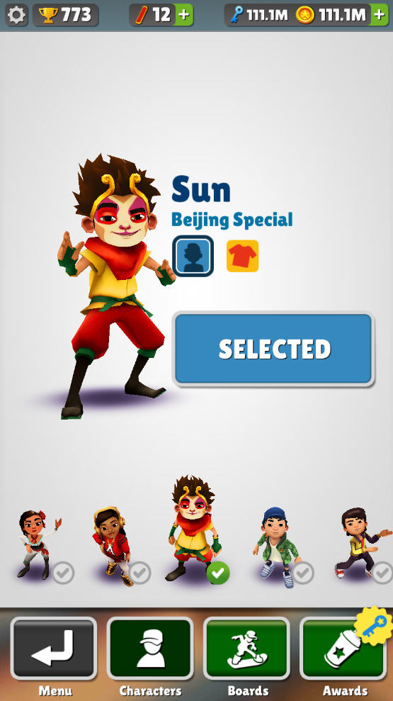 2、subwaysurfers集合一定量的碎片,就可以兑换版本最新的角色,还是很容易的