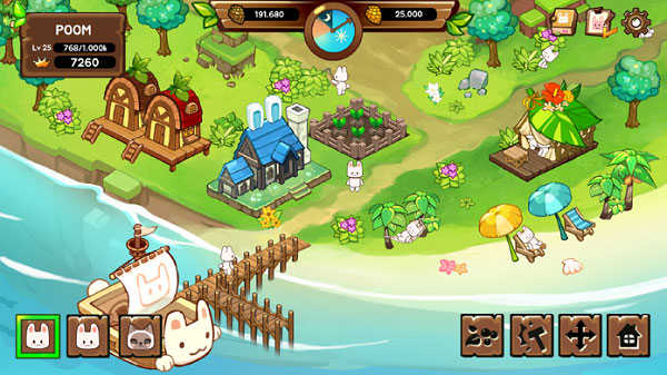 1、治愈的游戏画风,简单好玩的放置经营模拟,发展你的度假村吧。