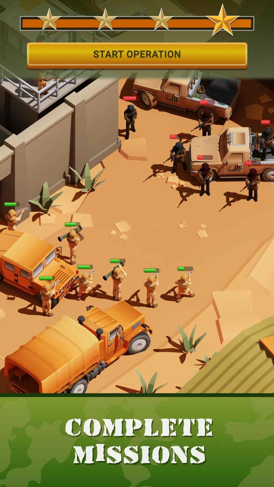1、空闲部队陆军大亨丰富刺激的战斗玩法,解锁更多武器,轻松完成任务。