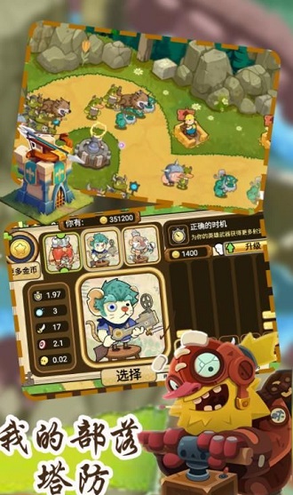 1、好玩的塔防游戏,玩家需要在不同关卡布置防御,抵挡每一波的攻击,保护自己的部落。