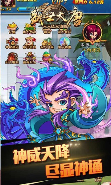盛世大唐玩家身处在萌趣灵动的大唐世界,丰富多彩的玩法模式,玩家快带上好友去征战四海八荒,与其他真实玩家互动竞技,究竟谁才是真正的英雄,不妨一起来这里为自己正名,努力达成更多成就,不断让自己变得更加强大,只有这样你才能成为真正的勇士。