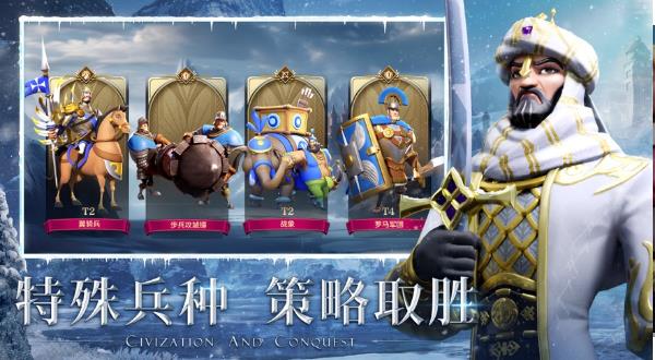 文明与征服北境争锋中世纪背景的一款战争策略类游戏,需要玩家通过更为全面的帝国建设和养成,完成对游戏世界的经营哦。玩家需要探索未知的领土,并将其开发成自己的领土,建造城市和发展经济。同时,玩家还需要招募军队并训练他们,准备与其他国家进行战斗。玩家需要根据战争形势来选择最适合的并兵种。