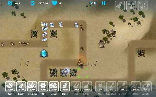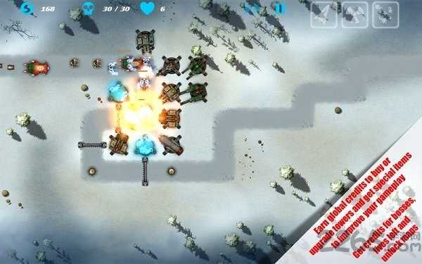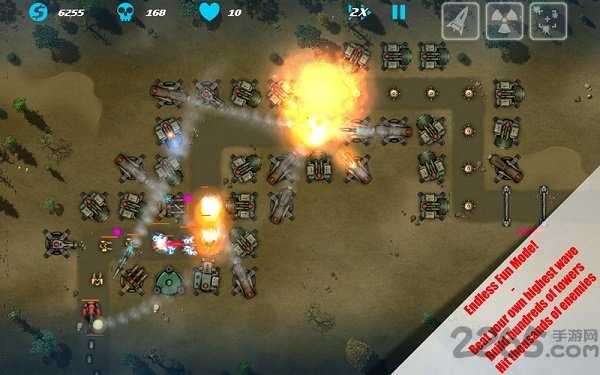 主要的玩法和大多数塔防游戏并无二异。玩家在游戏中可以通过战斗获得金币和奖励,用来升级塔防和解锁新的武器,采用了怀旧的街机风格,精彩无限,同时还有最新的模式上线,更加的好玩,现在战斗场面更是火爆异常!游戏玩法简单。