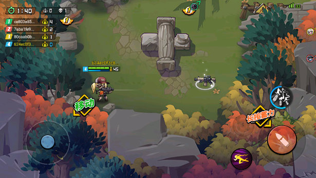 2、通过虚拟摇杆控制走位和射击方向,利用弓箭或者捡到的武器击败你的对手。